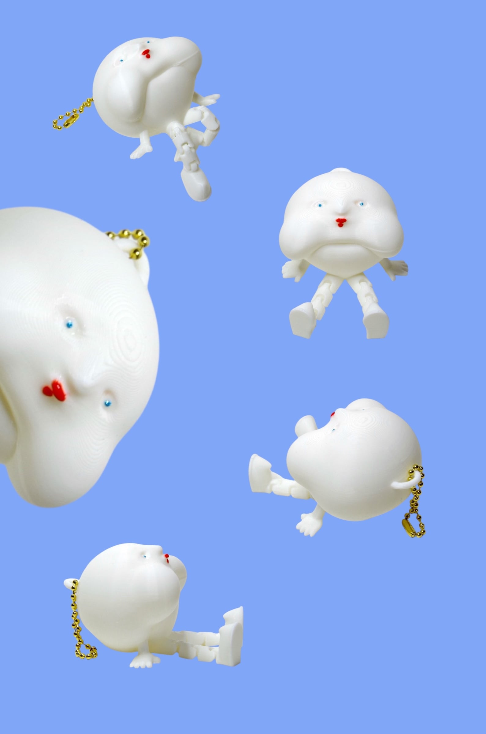 3Dプリンターで精密に造形された、小さなキャラクターチャーム。