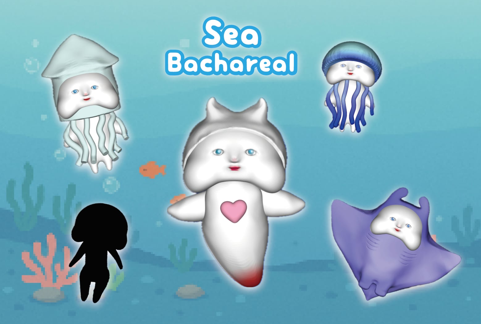 海の生物たちの姿に、赤ちゃんの顔を重ね合わせた3Dプリントチャーム。
